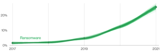 根据Verizon发布的《2022数据泄露调查报告》(DBIR)显示,勒索软件在2022年同比增长13%,这一增长幅度相当于过去五年的总和。