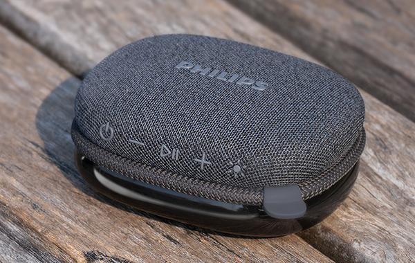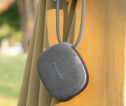 随身携带的音箱,自然是越轻越好。飞利浦S2307便携式音箱在设计上突出了轻盈便捷的特点,大约是一枚苹果的重量。可以轻松握在掌心,或随身塞在口袋里,甚至挂在书包上立刻出门。飞利浦S2307音箱自带的拆卸式挂绳设计非常便携,与其说像音箱,不如说挂在手上的潮流配饰,还可以搭配各类时尚服装配色。机身上有便携提带,无论是系在自行车把手,还是挂在露营帐篷外,都更为彰显独特个性。