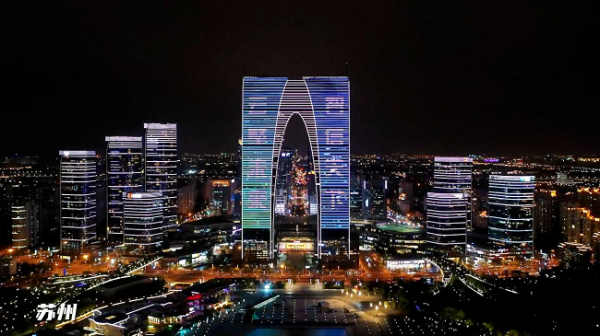 24日晚,移动云品牌焕新亮灯仪式率先在“鱼米之乡”苏州进行,于“世界第一门”东方之门的户外大屏上展示全新Slogan,将“云擎未来,智信天下”的品牌新主张 直观告知。这场移动云品牌焕新“首发灯光秀”,点燃了姑苏城夜空,在夜幕下的车流灯光中格外引人注目。