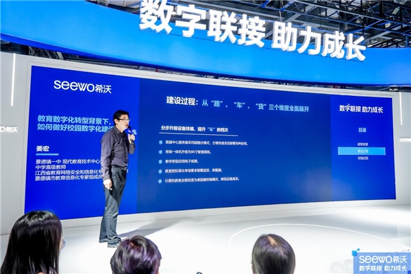 近日,在第81届中国教育装备展示会现场,一场交流会吸引众多的现场观众驻足。江西省教育网络安全和信息化专家委员会专家、景德镇一中现代教育中心主任姜宏,以“教育数字化转型背景下,如何做好校园数字化建设?”为主题,分享景德镇一中的教育数字化转型经验。