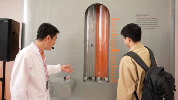 (工作人员向参会者介绍九阳V1 Fast技术原理)