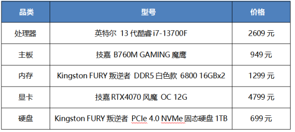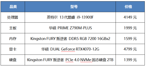 在性能不能下降太多的前提下如何压缩开支?处理器换成性能依然出色的英特尔i7级别,内存频率降低一点,固态硬盘容量也降低一些,留在未来再升级即可。显卡依然选择RTX4070,毕竟想跑爽光追游戏,显卡档次不能太低。