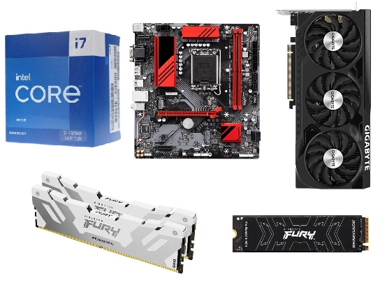英特尔13代酷睿i7-13700F处理器依然是一款高性能的处理器,拥有16核24线程,智能缓存30MB,睿频最高可达5.2GHz,针对当前主流游戏没有任何瓶颈。主板则选择了技嘉的B760,这款主板不仅支持DDR5内存最高可达8000MT/s(OC),还提供了2组PCIe 4.0 M.2插槽,未来升级固态硬盘也十分便利。显卡选择了技嘉RTX4070风魔 OC 12G,三风扇设计运行更平稳。