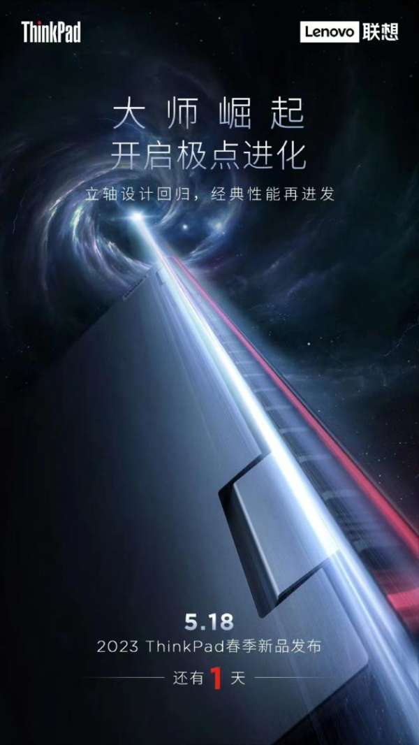 联想 ThinkPad 2023春季新品发布定档 5 月 18 日,此次发布会主题是 “以思考进化时代“,将在线上与线下同步举行。