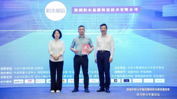 5月26日下午,首届中国元宇宙应用场景大赛成果发布暨河畔元宇宙论坛在北京城市副中心圆满落幕。活动在通州区委、区政府指导下,由北京大数据协会元宇宙专业委员会主办,中国质量认证中心、绿色智能新经济产业联盟、中关村元宇宙产业发展联盟协办。积木易搭凭借“北京国际设计周永久会址元宇宙场景搭建”项目设计作品,获得了本次中国元宇宙应用场景大赛的“最佳元宇宙会展应用场景奖”金奖。