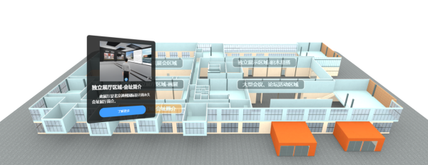 如,在公共展会区域,主办方可以打造主题式展区,观众则可利用“数字分身”,快速进入展会,建立交流氛围。在独立展示区域,主办方则可按照自身需求,选择主题性素材独立部署展厅,表达主办方所传达的核心内容。而在大型会议、论坛活动区域,主办方可以开展主题式线上会议、论坛交流等丰富活动。