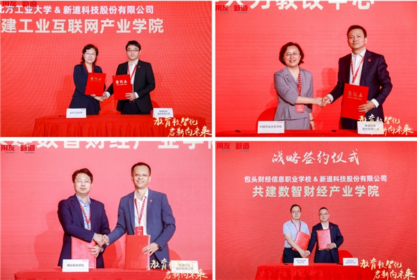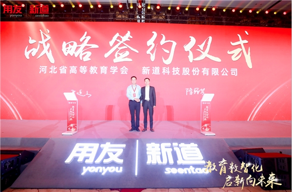为深化产教融合,服务构建高质量教育体系,推动教育创新发展。新道科技与河北省高等教育学会举行战略签约仪式。河北省教育厅一级巡视员、河北省高教学会会长王廷山与新道科技股份有限公司董事长兼总裁陈强兵上台签订战略合作协议。随后,新道科技和中国新高教集团举行战略签约仪式,中国新高教集团学生与企业服务部总经理姚莉与新道科技股份有限公司副总裁田鹏上台签订战略合作协议。