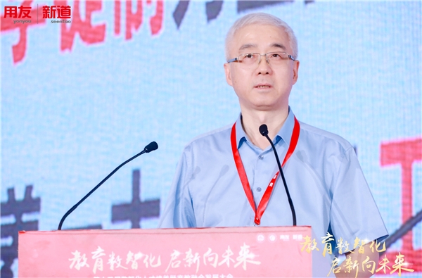 西安电子科技大学副校长王泉以“‘六新’推动高等教育的数字化转型”为题进行分享。他表示,信息技术发展为教育数字化转型提供了技术支撑。西安电子科技大学建设人工智能+教育标杆校的优势,以数字化转型重构人才培养的体系,以“六新”建设推动教育数字化转型。随后,他详细介绍了处处能学、时时可学的育人“新环境”,类型重构和供给方式重构的“新资源”,基于信息技术和智能技术的“新教学”,大数据支撑下的教育教学“新评价”,人机结合、人技结合的能力“新培训”,基于数据驱动的高校智治体系“新治理”的“六新”内容和举措。王泉表示,西安电子科技大学与新道科技进行了一系列合作,未来也期待双方能继续深化产学研合作,推动高等教育发展。
