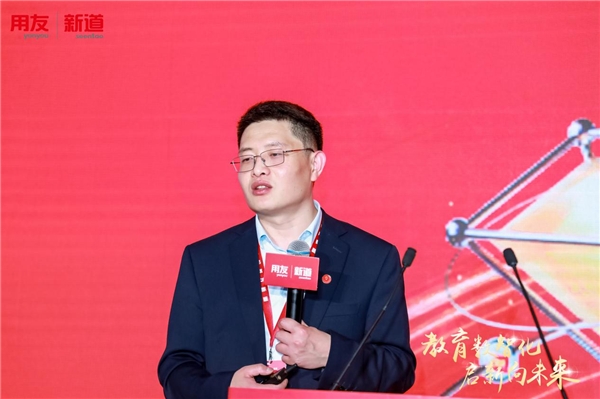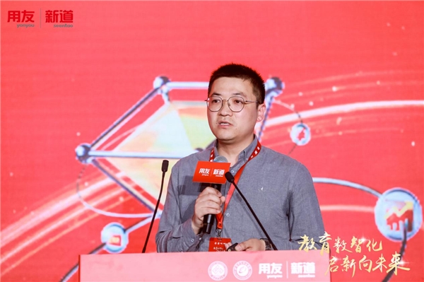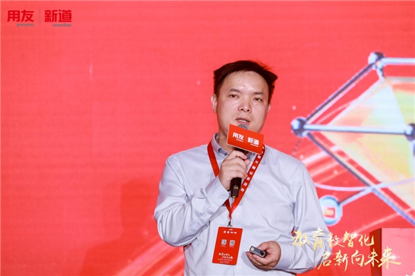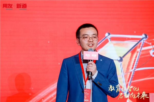 新道科技股份有限公司区块链金融事业部总经理、金融领域高级专家张春光以”产教融合共育金融科技人才”为主题作了演讲。张春光从新金融、新挑战、新发展等多方面阐述了新道科技基于用友强大的技术平台与产业的最佳实践案例,校企共建金融科技数字融合实践课程,赋能金融专业数字化转型和金融科技新专业建设。他引用”农夫山泉不生产水,它只是大自然的搬运工”比喻新道作为桥梁的角色连接了广大院校和用友生态,扮演了产业案例教学化的最佳服务者。
