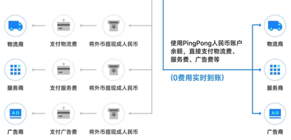 在全球服务网络建设的基础上,PingPong福贸还通过与花旗、摩根大通等国际系统性重要银行取得战略合作,构建本地清算网络体系,打造高效联通的全球收付清分通道,并将上下游的生产商、贸易商、物流商、营销商等引入了同一体系内,提供人民币账户,加强境内外资金收付通道的双循环构建,不仅使得外贸企业无需兑汇就可以直接完成B2B式跨境收付款,还能支持外贸企业能够直接面向境内供应链上的供应商完成付款,并减少了中间兑换外币环节、减少中间行介入,因此到账速度也提升至秒级,中间行手续费大幅降低至0元,从而有效为外贸企业在境内外收付款环节做到降本增效,促进了企业国际、国内贸易的双循环建设。