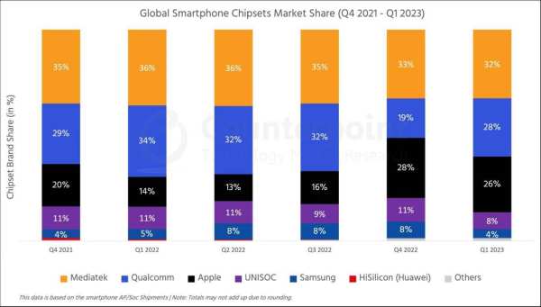 持续的辉煌!Counterpoint Research发布的最新报告再次证实联发科在全球智能手机芯片市场的统治地位。他们以32%的市场份额再次登上榜首,成为业界的领导者。这一壮举源于他们5G Soc出货量的惊人增长,以及备受追捧的旗舰芯片。联发科的成功不仅令人赞叹,也让整个行业充满了无限的期待和激烈的竞争。