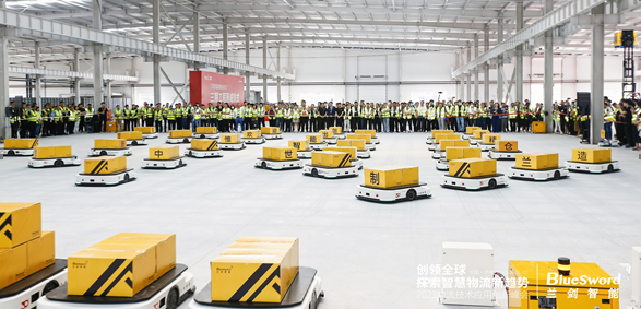 其中,兰剑智能自主研发的移动机器人系统具备多车型集群高效协作、全流程、全场景适应性、快速部署、高柔性扩展等优势。