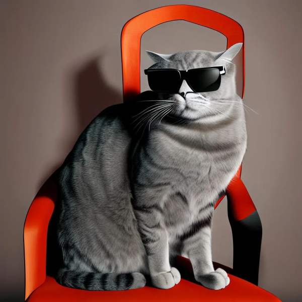 超现实主义:一只猫坐在椅子上,戴着一副墨镜,抽象技术风格