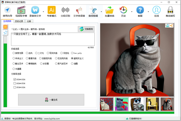 下面我们直接来演示“录音啦”【AI绘图】功能