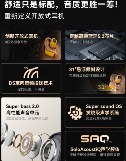 创新开放式传音设计,健康卫生舒适的听歌方式