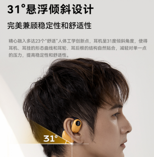 南卡OE PRO更是采用了31度悬浮倾斜设计,精心融入了多达23个“舒适”人体工学创新点,通过将耳机呈31度倾斜角度,使其与耳轮和耳后根的结构自然贴合,减轻了对单一点的压力,提高了稳定性和舒适性。此外,采用悬浮式设计,可以更加均匀地分散压力,使得佩戴耳机的时候不会感觉到紧绷或刺痛的感觉。这种设计还可以有效地减少长时间佩戴时对耳朵的疲劳和不适,让用户能够更加舒适地享受音乐和通话体验。