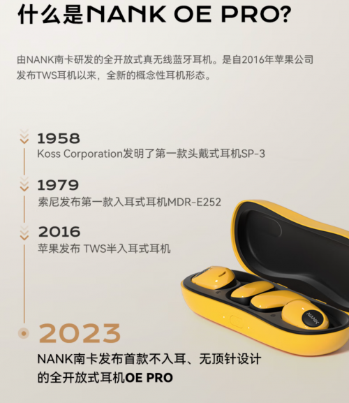 南卡 OE PRO 蓝牙耳机是南卡专业技术积累的结晶,在耳机健康隐患方面,南卡进行了充分的调研和了解,发现传统的蓝牙耳机存在一些健康问题,如耳道细菌滋生和难受肿胀、听力受损等问题。针对这些问题,南卡设计了更迎合人类听音习惯的开放式蓝牙耳机产品。