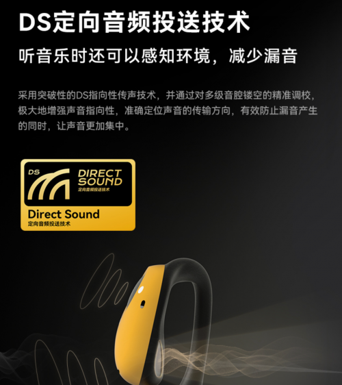 开放式耳机的设计使得耳机所播放的声音可以被他人听到,所以开放式耳机要提升隔音效果,减少外界干扰和声音泄漏。南卡采用的DS定向音频投送技术,可以有效控制声音的传播方向,能够精确控制音频的投送方向和范围,提供身临其境的音频体验,让用户感受到真实的音场效果,并减少环境噪声的干扰。