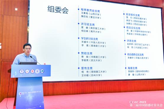2023年6月30日-7月2日,由中国中文信息学会情感计算专委会主办,西安交通大学承办的第三届中国情感计算大会(The Third Chinese Conference on Affective Computing,CCAC 2023)暨中国中文信息学会情感计算专委会工作会议在陕西省西安市举行。来自全国五十多所高校、科研机构和企业的近四百位代表齐聚西安,共同探讨情感计算领域的最新进展和发展方向。大会由西安交通大学管晓宏院士、哈尔滨工业大学李生教授担任大会荣誉主席,清华大学陶建华教授、西安交通大学龚怡宏教授担任大会主席。山西大学王素格教授、复旦大学魏忠钰副教授担任程序委员会主席。