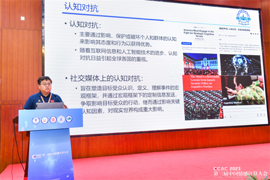 大会邀请了情感计算领域知名专家做特邀报告。北京大学心理与认知科学学院方方教授带来了题为“人类情绪知觉的机制、功能和调控”的特邀报告。他指出,情绪知觉既包含对感知觉信息的准确解析,又涉及情境信息调节下的适应性反应。为探索这些功能在大脑当中如何实现,他从不同方面阐述了人类情绪识别和调控的认知神经基础。复旦大学大数据学院院长冯建峰教授带来了“大脑启发的情感计算:数据与建模”的特邀报告。他首先回顾了人类情绪生物学研究的现状,包括皮层和皮层下活动及其与抑郁症等情感障碍的关系。进而介绍了研究组建模人类大脑所做的研究工作。哈尔滨工业大学秦兵教授带来了题为“大模型时代的安全性内容生成与价值观对齐”的报告。她从大模型的安全角度出发,探索大模型生成内容安全性检测及生成方法,从而研究人类普世价值观,社会文化价值观及立场对齐上的内容检测与生成方法,探索人类社会协作的价值观对齐机制。特邀报告由山西大学王素格教授和大连理工大学的林鸿飞教授主持。