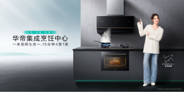 值得一提的是,长期的创新研发赋能华帝产品的成效十分显著,就拿今年推出的华帝集成烹饪中心来说,其在1㎡的占地空间内,集合了油烟机、灶具、蒸箱、烤箱、空气炸锅、隔水炖盅、保温饭盒等7大厨具的功能,且对烟机、灶具、蒸烤区域等各功能模块技术进行了创新升级,全面提升烹饪效率,给消费者带来了“一米空间七合一,15分钟4菜1汤”的高效烹饪体验。
