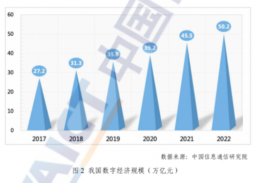 根据中国信通院发布的《中国数字经济发展研究报告(2023年)》显示,2022年我国数字经济规模达到50.2万亿元,占GDP比重高达41.5%,相当于第二产业占国民经济的比重。由此可见,数字经济已成为我国经济高质量发展的新动能,未来经济社会发展的方方面面都会被数字化、智能化深深改变。
