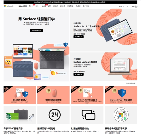自 7 月 20 日起,微软推出面向大学生的 2023 返校季活动(https://www.microsoftstore.com.cn/?WT.mc_id=msftcn_PR):用 Surface 轻松迎开学,享教育优惠 7 折起,加 1 元购开学好礼(精巧鼠标+含海量模板的 OfficePLUS+一年延保),叠享 300 元星巴克卡,24 期免息分期等更多惊喜福利。