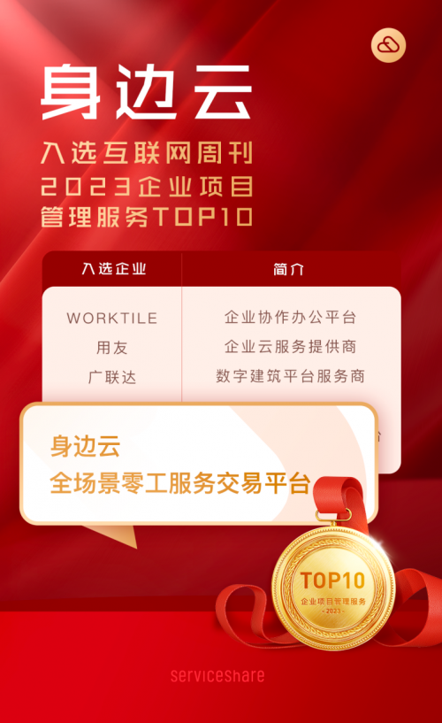 近日,由中国科学院主管的《互联网周刊》联合德本咨询等机构正式发布了“2023企业服务分类排行”,对过去一年企业服务领域的行业表现进行了全面梳理和评估。身边云作为全场景零工服务交易平台,凭借一站式服务解决方案、定制化标准管理工具以及累计服务5万家企业客户的业绩入选“2023企业项目管理服务TOP10”榜单,一同入榜的还有Worktile、用友、广联达等各领域的TOP企业。