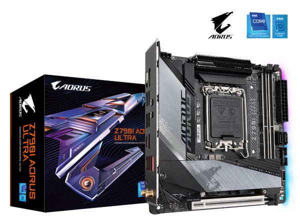 而另一款则是新星小板Z790I AORUS ULTRA,Z790迷你雕,作为技嘉700系唯一一款ITX主板,别看他身材小,实力却不容小觑。正是因为它娇小的身材配上双内存插槽的设计,使内存能获得最优的电气性能和最少的信号干扰,超频到更高的频率。