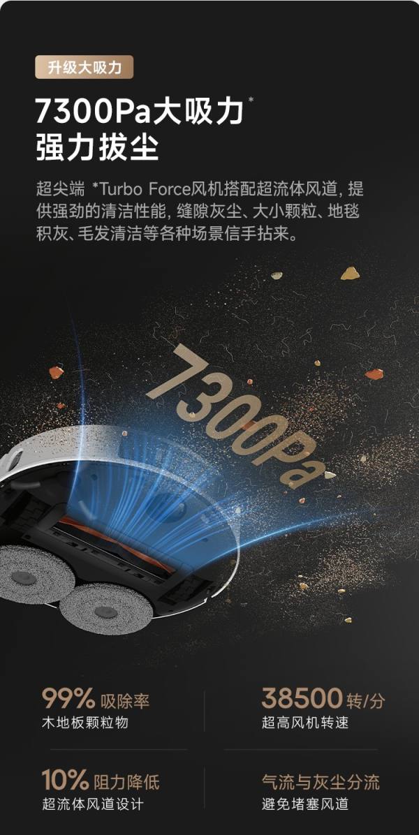 7300Pa强大 吸力持久稳定 ,行业首创 主动式 割毛防缠绕滚刷,毛发清洁无忧