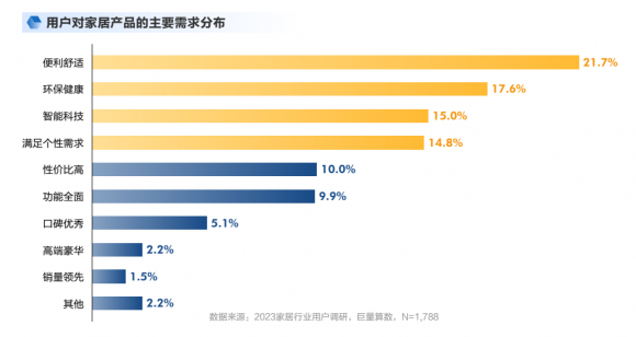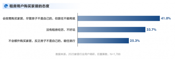 根据巨量算数2023家居行业用户调研数据显示,超过40%的用户会在租房时购买所需家居产品。