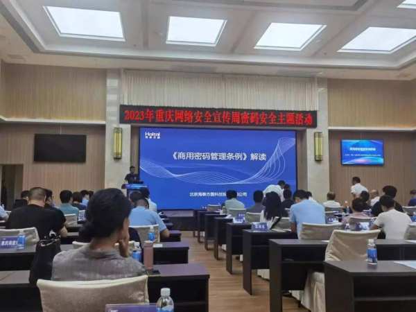 在9月14日举办的2023年重庆网络安全宣传周密码安全主题宣传活动上,海泰方圆Roy罗带来《商用密码管理条例解读》主题演讲,从条例实施的背景、意义、新旧条例的对比分析等角度进行了全面的解析,让广大参会人员“听懂、学会、记住”,实现一起“学密码、懂密码、用密码”,让商用密码真正“走进寻常百姓家”。