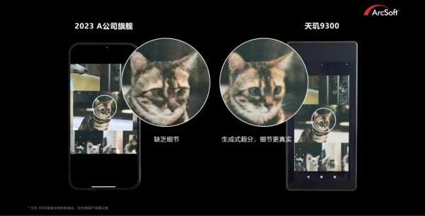 联发科还携手业界合同伙伴打造精彩的生成式AI应用体验。虹软的生成式AI超级分辨率技术基于天玑9300 APU 边缘计算能力,相比前代,性能可提升30%。在25倍放大的拍摄时,利用生成式AI超级分辨率技术,可以拍出细节更真实的图像效果。