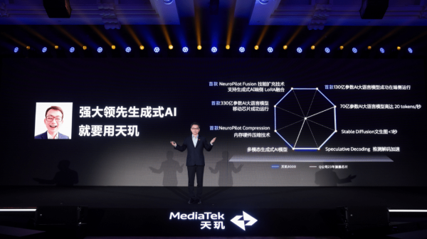 基于强大的AI算力和先进的内存硬件压缩技术、AI模型端侧技能扩充等技术,天玑9300的APU 790将端侧生成式AI的速度和广度提升到了全新的水平。同时,为加速生成式AI在端侧部署和普及,联发科也凭借其AI开发平台NeuroPilot构建了丰富的AI生态,从底层硬件到工具链、模型中心以及开发生态,助力生态快速、高效地部署端侧生成式AI应用。