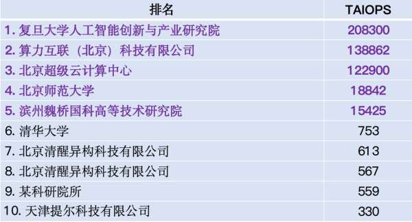 基于AIPerf-LLM,翟季冬发布了以“大模型训练能力”作为区分的算力排行榜。在可测的若干智能计算系统中,复旦大学人工智能创新与产业研究院、算力互联(北京)科技有限公司、北京超级云计算中心、魏桥国科智算中心、北京师范大学(珠海)交叉智能超算中心提交的智能计算系统位列AIPerf-LLM Top5。