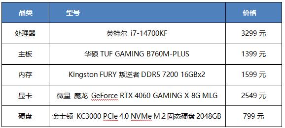 英特尔 i7-14700KF处理器相比上一代改进更多,不仅核心增至20,线程也增至28,三级缓存增至33MB,睿频也提升到了5.6GHz,单P和E核睿频也增至5.5GHz和4.3GHz,相比而言这款性价比也更高。配备的主板没有选择Z790,而是更经济的B760,华硕TUF GAMING B760M-PLUS在升级最新BIOS后,已经全面支持英特尔14代酷睿处理器,并且内存也同样可以支持4组48GB的DDR5 7200(OC),从实际性能表现与Z790没有明显差距。