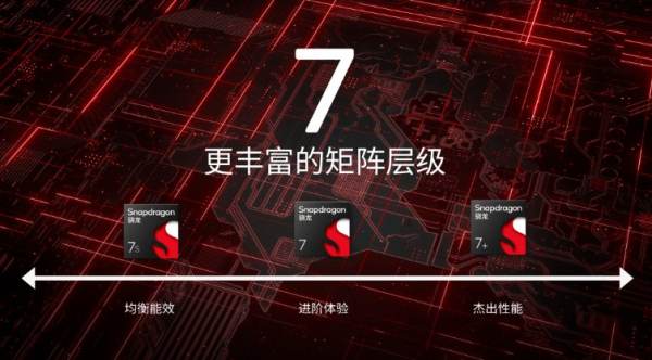 目前骁龙7 这个系列的产品线,铺的比较大也比较杂,简单来说就是又细分了三个系列:骁龙7+系列相当于骁龙8+等这种老旗舰芯片,在频率等小参上砍一刀;骁龙 7就是数字系列的正常迭代;而7s,这个基本上默认看做骁龙6的换皮。