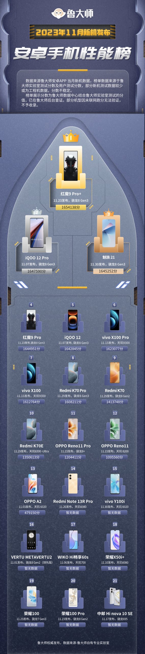 ok,那么话不多说,让我们一起来看看11月的鲁大师新机榜都有哪些产品进榜吧。