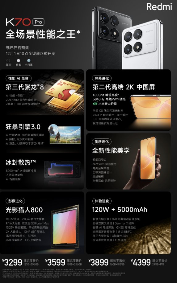 但是在鲁sir看来,排名第九的Redmi K70才是真正意义上的“全体起立”,除了处理器采用了骁龙8 Gen2之外,其余配置和K70 Pro几乎无异,2499元的起售价更是让人直呼“鲨疯了”,感觉比Pro版还要更香一点。