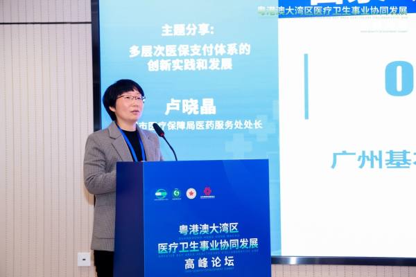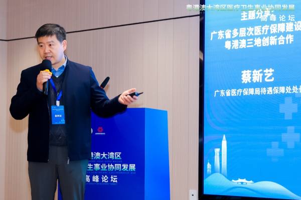 次日上午,在第三个主题“大湾区多层次医疗保障体系的合作和创新”中,国家医疗保障局医药服务司原司长熊先军发表致辞。随后,广东省医疗保障局待遇保障处处长蔡新艺以“广东省多层次保障建设和粤港澳三地创新合作”为题,介绍了广东省多层次医保体系的概况,以及加强粤港澳大湾区区域协同、提升“港澳药械通”可及性的创新探索。