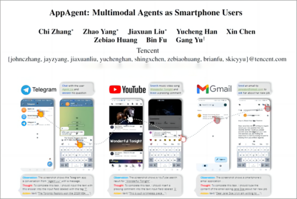 除了创业公司,科技大厂也在关注这个领域。最近腾讯和德州大学达拉斯分校的研究团队合作开发了一个名为AppAgent的项目,该项目可以通过自主学习和模仿人类的点击和滑动手势,在手机上执行各种任务。