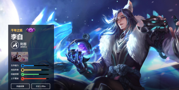 2.千年之狐:李白化身为一位来自千年的狐狸精,身穿一件白色的狐狸皮大衣,手持一把狐形长剑。在这个皮肤中,李白的技能效果也得到了全新的设计,尤其是大招“青莲剑歌”,释放时会有雪花和狐火的特效出现,让人感到非常温馨。