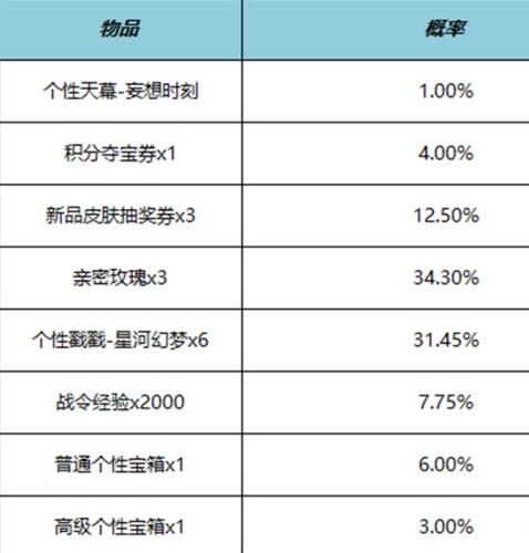 妄想时刻天幕礼包概率: