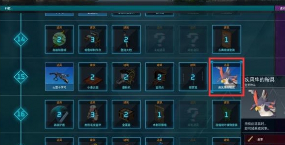 2、之后玩家捕捉完成后就可以在科技界面使用科技点解锁疾风隼的鞍了(其它乘骑类帕鲁同理);