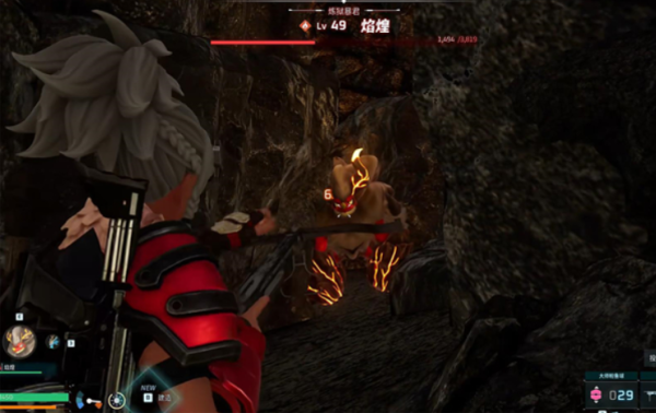 想要无伤打焰煌,玩家需要利用游戏中的脱战机制,由于焰煌是在山洞当中的,玩家可以将焰煌引到山洞通道中,在这里玩家所处的位置被判定脱战,因此玩家可以无限制用远程武器对焰煌攻击又不会挨打。
