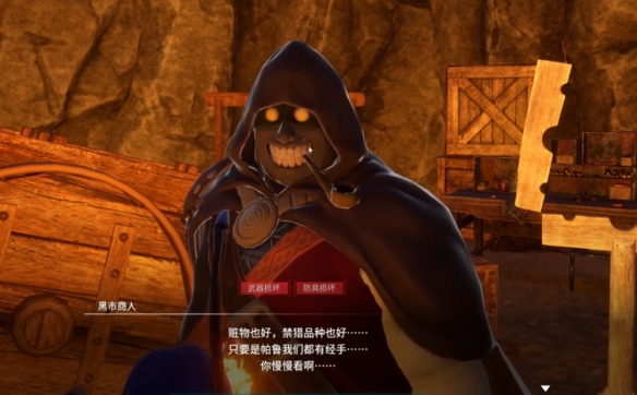 2、然后找黑市商人按F进行对话,控住黑市商人,接着让一起联机的小伙伴打黑市商人。