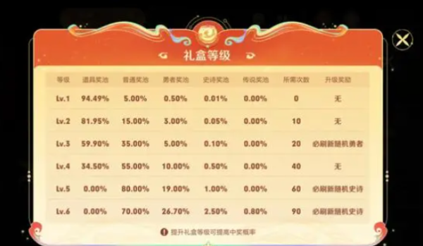 4、灵宝市集保底奖励:当刷新次数达到20次时,皮肤奖池刷新必出勇者或史诗奖池奖励;当刷新次数达到60次,皮肤奖池刷新必出史诗奖池奖励;当刷新次数达到90次,皮肤奖池刷新必出史诗及以上奖池奖励(刷新时不会刷新到已经拥有的皮肤)。