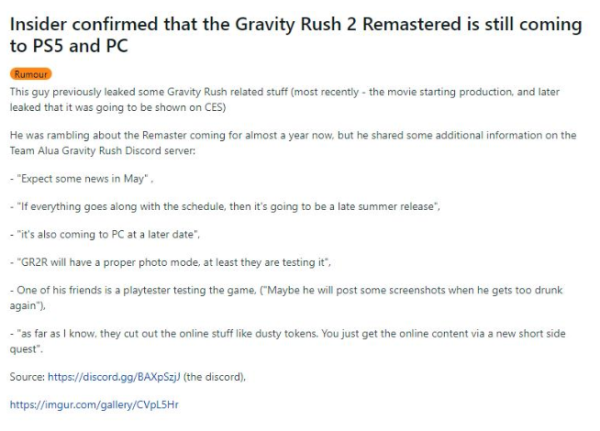 近日,爆料人Orangee在Team Alua Gravity Rush Discord服务器上分享了一些《重力异想世界2》复刻版的信息,Orangee之前爆料了一些与《重力异想世界》相关内容,包括电影制作以及它将在CES 2024上展示。