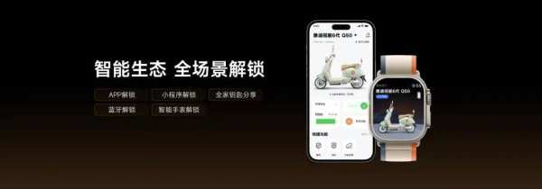 在智能化方面,雅迪智行系统更多考虑到了智能设备和车机的链接,丰富了蓝牙、APP、小程序、智能手表等解锁方式,让智能出行覆盖全场景。用户还可通过多款智能手表实现互联控车,也可通过微信小程序、支付宝链接等方式分享车钥匙。