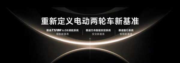 发布会上,雅迪发布了三大核心系统:雅迪TTFAR 6.0长续航系统、雅迪方舟智能安控系统和雅迪智行系统;以及冠能6代三款全新车型:雅迪冠能6代Q50、雅迪冠能6代T60、雅迪冠能6代M85。